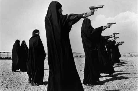 | Jean Gaumy Iran, Tehran, 1986. Veiled women practice shooting on the outskirts of the city. used on Hamas Arc |