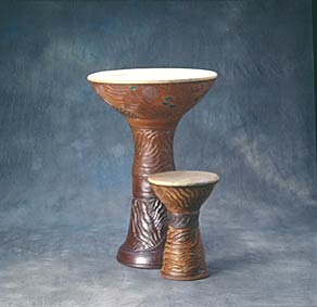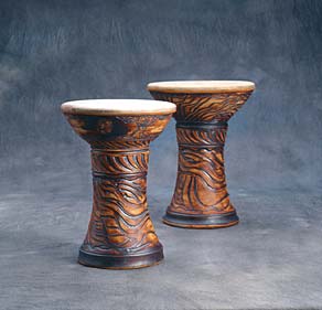 of the drum facing your right leg. each ceramic drum is unique. the drums are made of high-fired stoneware which is hand-carved and individually glazed. the drum heads are made of goat skin tightly stretched and glued to reduce the effects of humidity. visit www.filagreemusic.com - tim mcmullen / steve schmidt duo. |