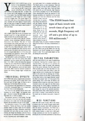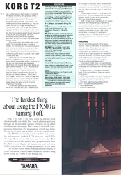 Distortion apart, I have to admit to being impressed with the FX500. The sound practically glistens as though it's being passed through an aural exciter, which is most pleasant and cuts through on mixes. The parameters have been well selected and care has been taken with most of the little things - like incorporating the type of reverb with the name of each memory location.) The stereo image created by the modulation effects is also worthy of special mention.