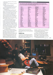 OVER THE LAST couple of years, MIDI in the context of effects units has evolved through simple patch changing to the situation where MIDI controllers can alter the values of parameters. The FX500 has a program change table which allows you to set up which memory location is called from a MIDI patch change command and also has the capability of allowing any two of 28 listed parameters to have their values changed by MIDI information. MIDI controllers 0 to 31 (continuous), 64 to 95 (switches) and 102 to 120 (undefined) can all be used, as can the note on/off velocity and channel pressure (aftertouch). For instance, the distortion amount could be controlled via a foot pedal sending out portamento time (MIDI controller No. 5) and to this end the Anatek Pocket Pedal (reviewed last month) would be invaluable as it can inject two extra MIDI controllers into the MIDI system. The range of the pedal can also be set so that full movement will only result in the chosen value changing within specified limits.