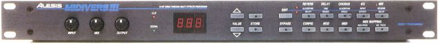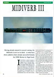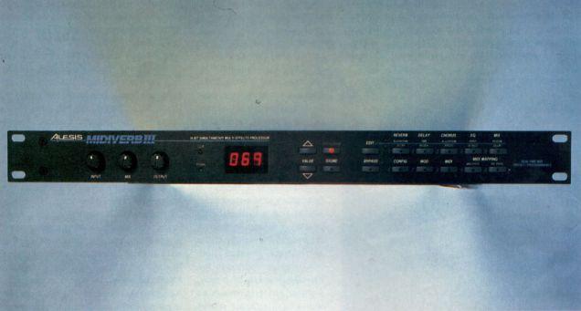 IN THE ALESIS scheme of things, the Midiverb III slots in just above the Midiverb II (which, I understand, is still available) and the altogether more sophisticated Quadraverb. It achieves this status by virtue of being programmable - which the Midiverb II is not - but having fewer effects and a slightly less impressive spec than the Quadraverb. Actually, given the multiple effects of which each of these units is capable, it is perhaps a little odd that Alesis should have stuck with the verb suffix in the naming of their products. I'd have thought they might be tempted to move away from the kind of name which suggests these are simply reverb units. But then, I don't suppose Alesis need any marketing lessons from me. All the same, people with no prior knowledge of this kind of unit (our guitarist friends, for example) might well undervalue the Midiverb III and that would be a shame.