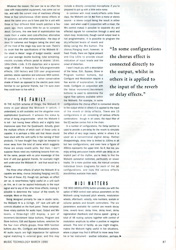 As with reverb, the first edit parameter in the chorus section allows you to choose the algorithm which forms the basis of each program. A total of 24 algorithms are available, divided equally between chorus and flanging effects. These two groups are then sub-divided to each provide six mono and six stereo effects, varying in intensity - from small to big depth, as the manual so quaintly puts it. The second parameter, Chorus Speed, gives you control over the modulation rate of the effects - pitch in the case of chorus and time in the case of flanging.