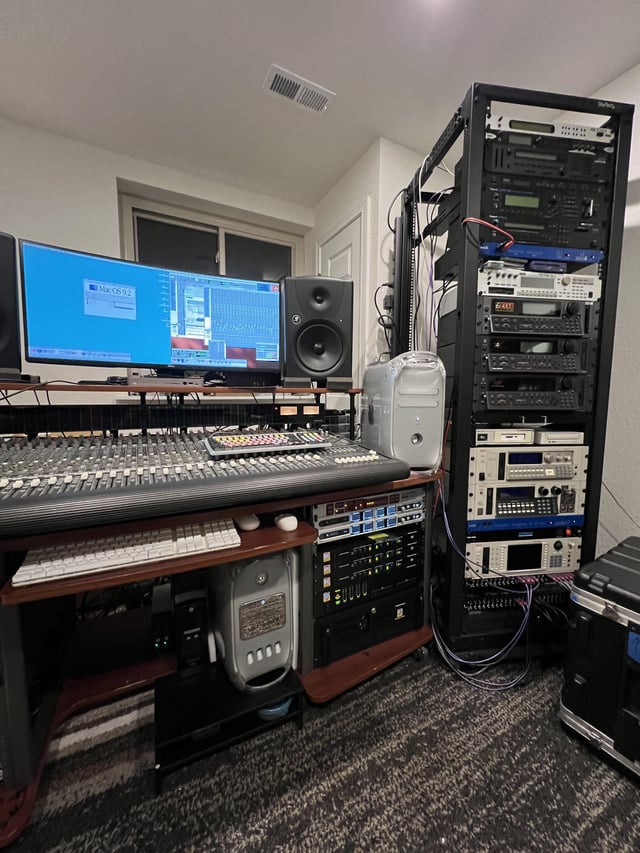 Wow that takes me back! That’s basically the exact rig I had in the nineties - the Akais, e-4s, mackie 32:8, the biggest TDM rig you could stuff into a Magma NuBus chassis, three SampleCell II cards with the TDM daughterboards, plus a Video Slave Driver, SMPTE Slave Driver, and a Horita black-burst generator.