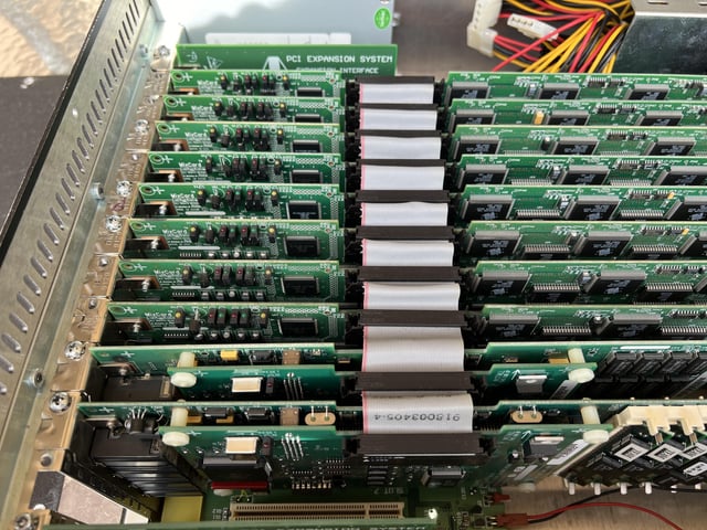 Pictures is 3x ADAT Bridges giving a total of 56 channels of audio (have another ADAT bridge that I need to install). One 888/24 as a preview interface for Sound Manager applications (no tracking) 8 Mix Cards 2 SampleCell II cards.