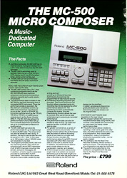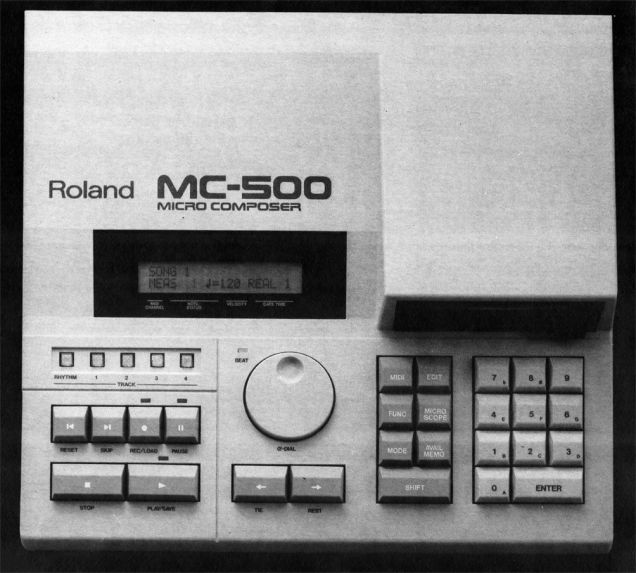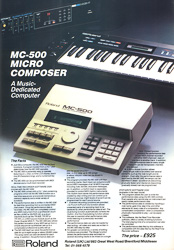 Does Roland's new baby live up to its pioneering forebears? It is certainly a tasty bit of hardware - a chunky slab of metal and plastic 12in wide, 11 in deep and 3.5in high on its rubber feet. The keys are a good size and well-sprung, the 40-character LCD display is back-lit and easy to read and the 3.5in disk drive whirrs and clunks confidently when you stick the MCR500 system disk in it.
