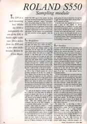 As mentioned, the S550 uses a disk-based operating system. The ease with which these are updated is great (the unit I have has version 1.0 software; they're up to 1.11 now with additional features such as the ability to read from and write to S50 disks). However, machines that have to address the disk for some (Ensoniq EPS) or all (E-mu Emax) of their functions drive me crazy. In Roland's case, there's a separate Utilities disk that needs to be inserted into the drive whenever you want to sample or manipulate the sample. Personally I'd like enough memory onboard to hold the operating system - which is available in the form of the HDIF interface for use with the Macintosh hard disk.