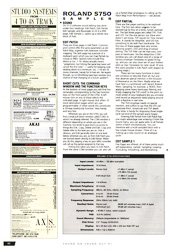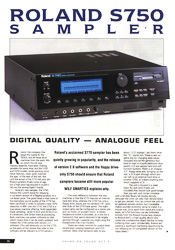 Apart from the exclusion of the internal 40 Meg hard drive, (and a minor improvement in RAM capacity — the S770 can 'only' go to 16 Meg), the only other aspect which sets the S750 apart from the S770 is the omission of the digital I/O facility. This was never as much use as it should have been anyway, because for some reason (assuredly not a good one) it was not possible to back up through this output to DAT. On behalf of all frustrated S770 users I appeal to Roland to amend this oversight. The implementation of SCMS copycode (grrrr!) on domestic DAT machines further devalues digital I/Os anyway. Fortunately the analogue inputs on the S750 are superb.