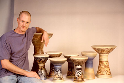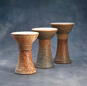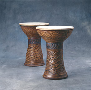 of the drum facing your right leg. each ceramic drum is unique. the drums are made of high-fired stoneware which is hand-carved and individually glazed. the drum heads are made of goat skin tightly stretched and glued to reduce the effects of humidity. visit www.filagreemusic.com - tim mcmullen / steve schmidt duo. |