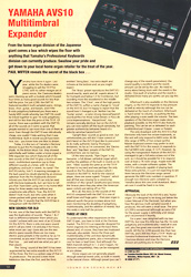 To understand the other expansions on the EMT10 spec, you have to look at the Electone market. The AVS10 is an expander designed for home organists (no tittering at the back there, please) and, of course, they have two keyboard manuals, plus pedals. Hence the three part multitimbrality of the unit (two dynamically assigned polyphonic parts, plus a monophonic one for bass or lead lines). And although the MIDI channels default to 1, 2 and 3 (again, for Electone compatibility), they can be reassigned as you please.