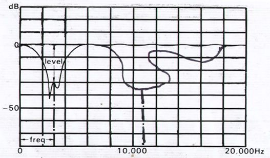 The system disk supplied with the TX16W contains 16 different basic filter shapes. Yamaha call them 'tables', but this seems rather confusing to me so I'll stick to the way I can best explain them. Figure 1 shows one of the filter shapes, which is a fairly typical example. This is a notch filter with two variable parameters - the centre frequency of the notch, and the depth of the notch. All the filters have two variable parameters. Most have frequency, which corresponds to the notch's centre frequency here, and level, which corresponds to notch depth in this case. A few of the filters offer frequency and the slope of the filter as the two variables.