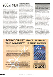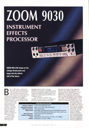 This is definitely Zoom's best product yet, better even, I would say, than the 9010 because it hits the mark more squarely and securely. Whether you want an effects unit to enhance your guitar work at live gigs, or improve the quality of your studio recordings, the Zoom 9030 has an incredible range to offer, and it's very simple to operate. If I were asked to comment on my one favourite feature of the 9030 I would put it like this: with other multieffects units, the quality of the sounds may have been high but I have always tended to scroll through the presets to find one that comes close to what I want, and then set about the arduous task of modifying it. With the 9030 I soon found that I could ignore the presets completely and just start from a blank sheet of paper every time. It is absolutely no effort to design your own effects combination from scratch and get something that is 100% right for the track. The Zoom 9030 marks a step forward in making hi-tech musical equipment easier to both use and exploit to the full. Other manufacturers should take a close look because Zoom are doing something right.