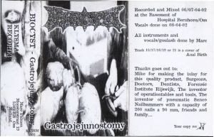Everyday Consumation (The Legend Continues...), Golden Intestinal Cyst, To Mince And Fuck Up, "Dumplings, Cabbage, Techno", Madrfakrz Bunkrz, Ashtray Made Of Beef, Attention! Your Vitreous Body Is Running Out, Desensitized (Regurgitate), Secretion Of The Shrubbery, Rebound Phenomenon During The Sudden Withdrawal Of Antihypertensional Medication, Cold Turkey, Extinguishing The Swollen Balls, Virtually Self-Urinated, Heroin Harrashment, Faekalic Hydroxide, Oslotron, Cunt Slime, Dead Body Love (Pungent Stench)